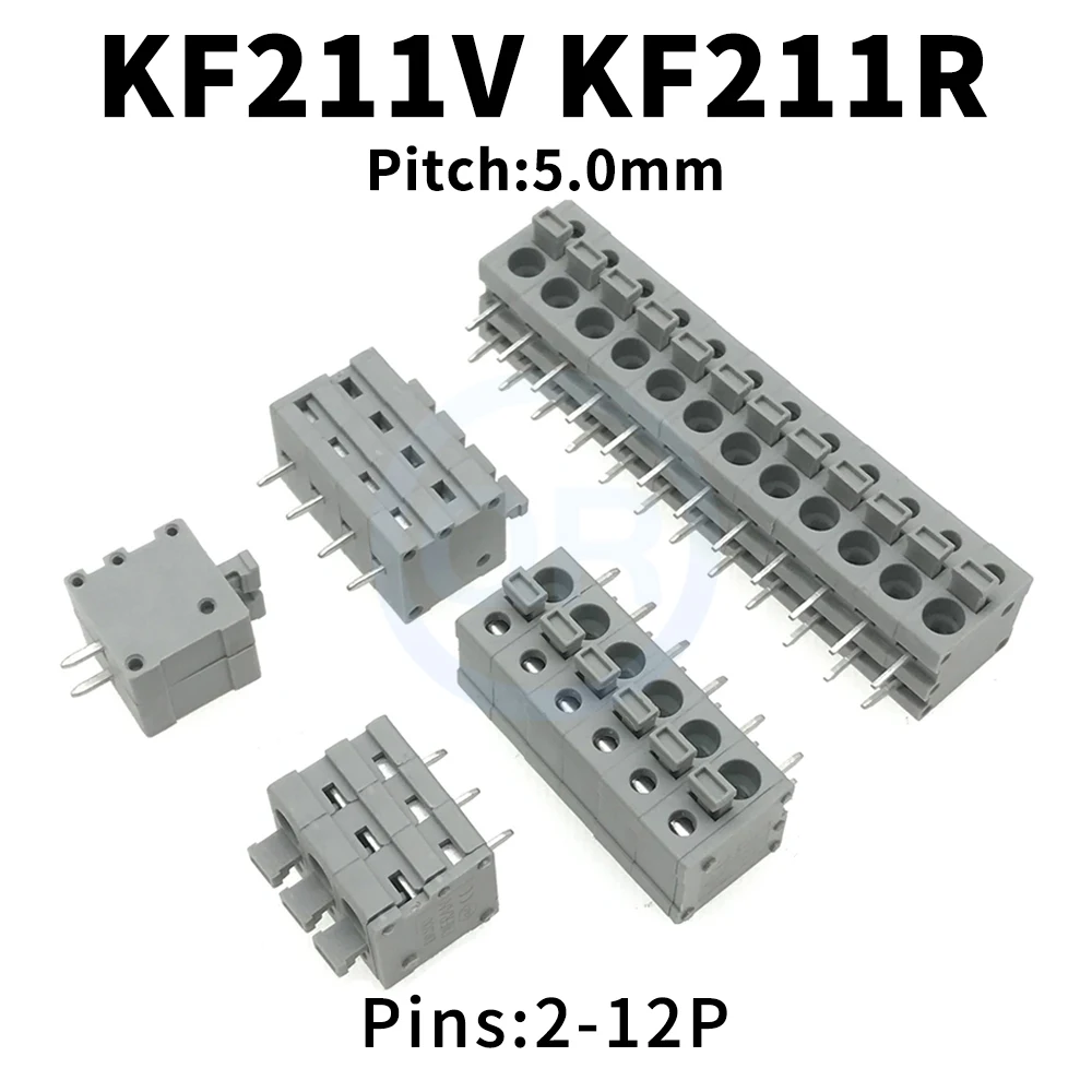 (10 pcs) KF211V KF211R 5.0mm jaro naložený PCB (desky plošných spojů) svorka blok fénix svorka blok DG 211V 211R 5.0 pravá úhel přímo 2~12P
