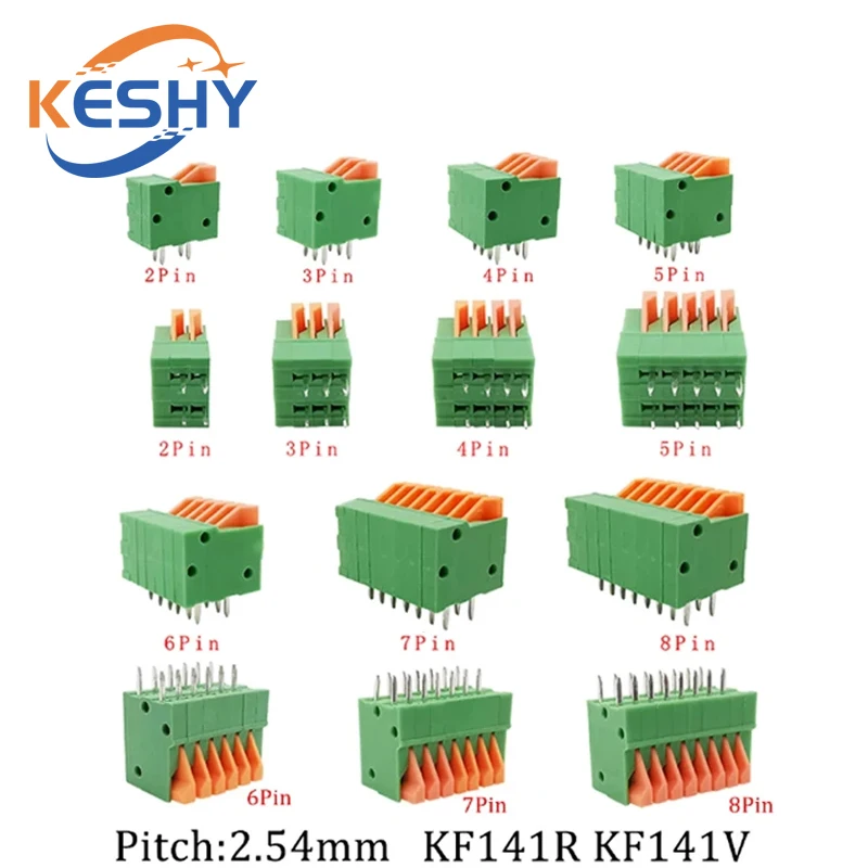 10ks 2.54mm namestí KF141V KF141R push-in jaro bezšroubové svorka blok straight/bent noha 2/3/4/5/6/7/8/9/10P PCB (desky plošných spojů) konektor