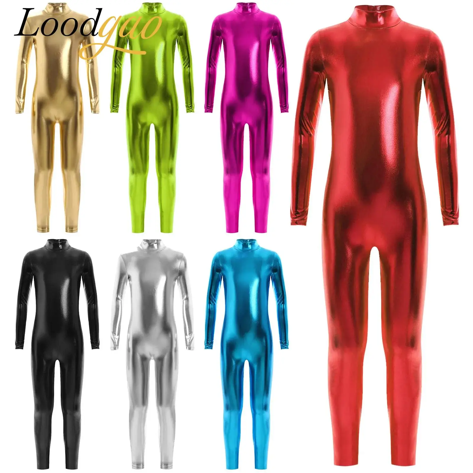 Dívčí metalické figura bruslení kombinéza gymnastika balet tančit trikot plný tělo kombinéza halloween bájit šaty kostým