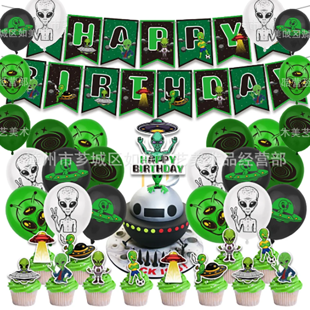 Kreslený sci-fi cizinec vnější mezera planeta narozeniny večírek prapor děti UFO hoch děťátko sprcha balón pestrý déšť záclona dekorace