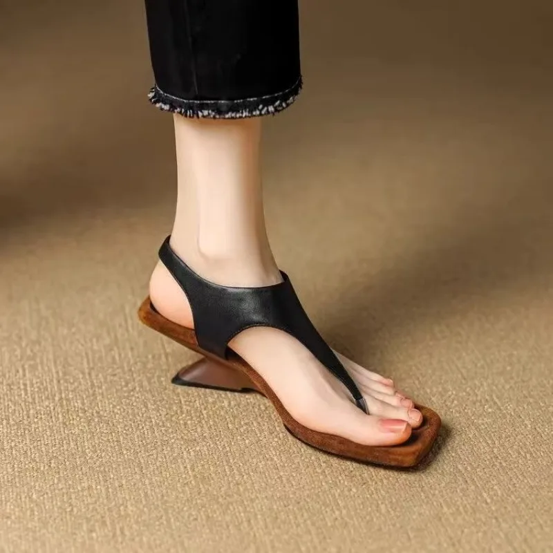 Cizinec na podpadku dámská obuv barva blokovánà­ minimalistické prst klín sandály pro ženy v léto 2025 s exponované toes a vysoký podpatky