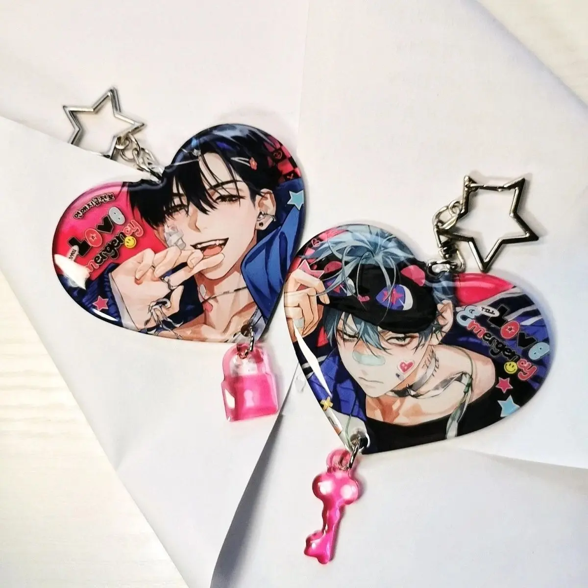 Cizinec jeviště bloodstain anime klíčenka ivan až do akryl klíč běžící pás muž sua mizi klíč prsten ženy srdce přívěsek okrasa roztomilá dar