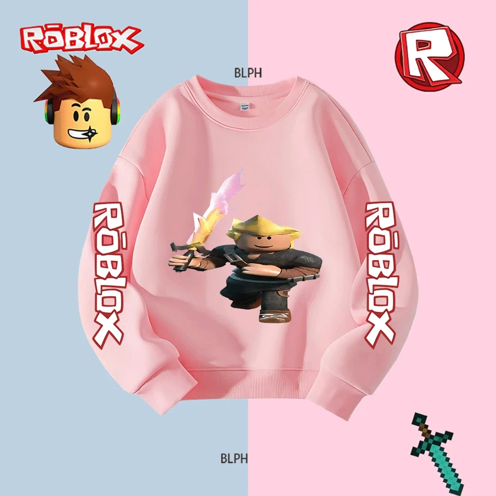 Roblox bojovnice děti mikina, hustý kreslený povaha & meč potištěné mikina ležérní pohodlné dlouhé - rukáv pulovr pro chlapci