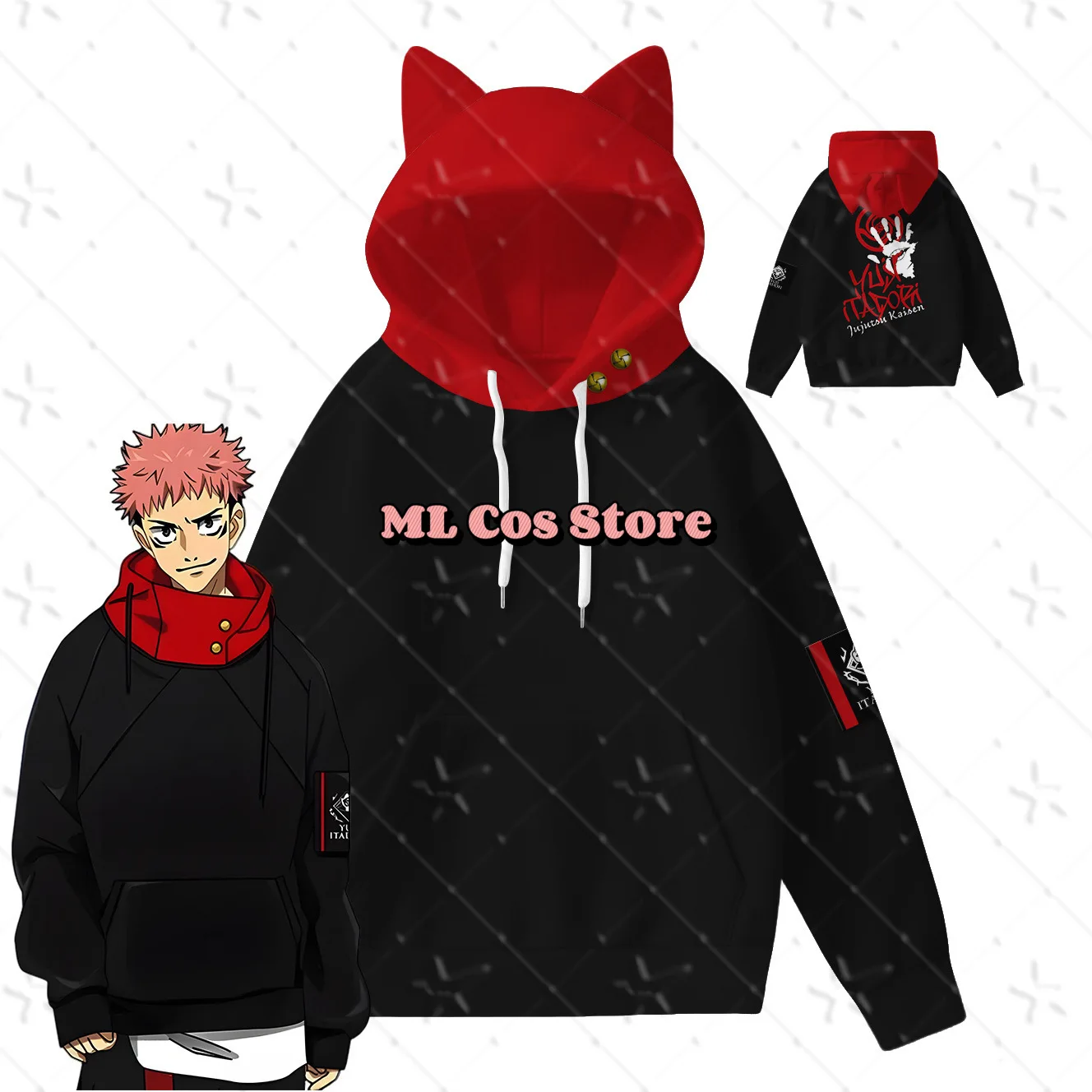 Anime inspiroval džiu-džitsu sorcery cosplais mikina pulovr mikina digitální tisk tygr ucho design ležérní pouliční oblečení pro anime fanoušek
