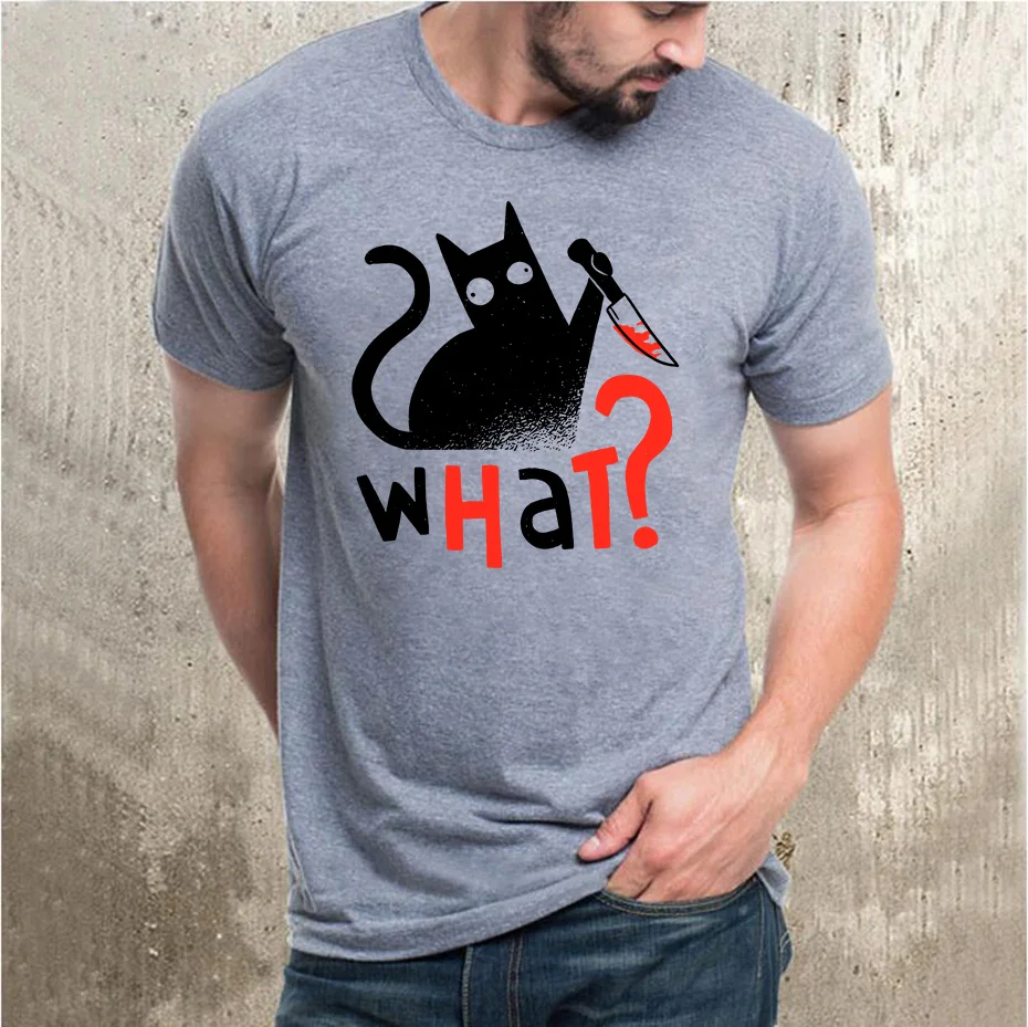 Novinkou vražda kocour krvavý nůž co? T košile muži legrační humor černá kočky tričko chlapci móda ležérní tričko košile léto oblečení