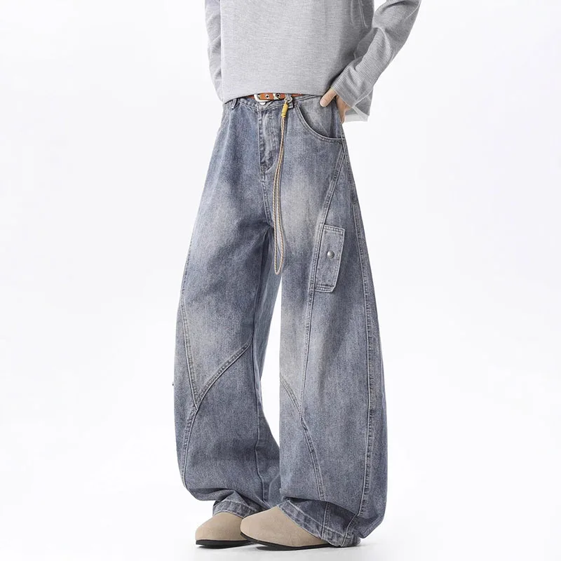 Jaro a podzim korejské styl velký kapsa workwear džíny ulice worn pánské zahnutá nůž kalhot ležérní široký noha kalhot