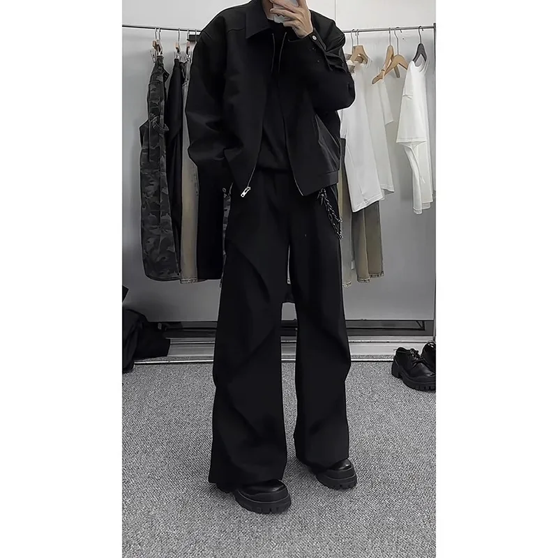 Černá nůž ostří plápolající ležérní kalhoty pánské léto široký noha volné odpovídat kalhot korejské styl polyesterová vlákno workwear