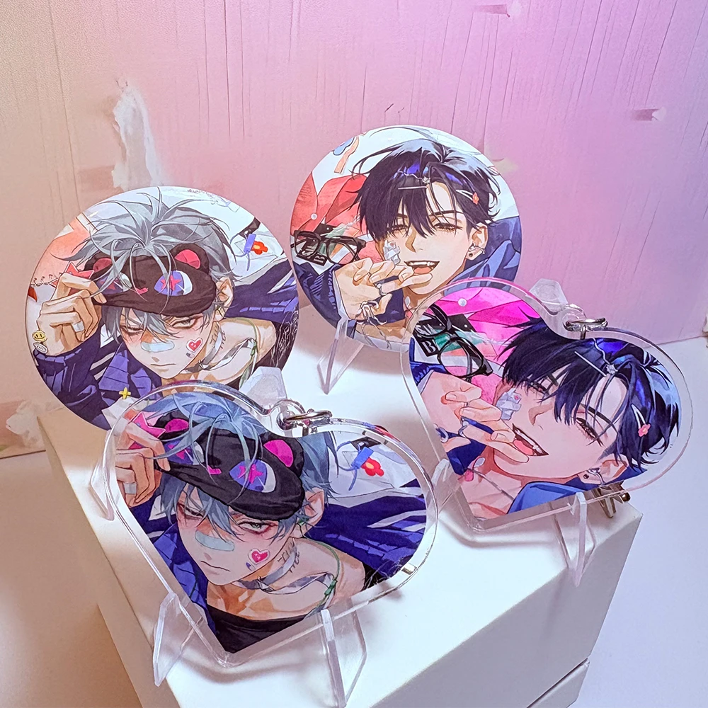 Cizinec jeviště IVAN & až do kreslený klíčenka srdce akryl kroužek na klíče bílý plech odznaky kreslený figura brože batoh příslušenství sada