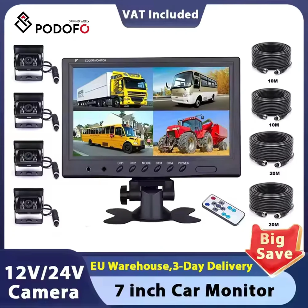Podofo 9" bezdrátový auto monitor LCD hd mini TV počítač reproduktor vga displej barva obrazovka auto záloha kamera & domácí záruka systém