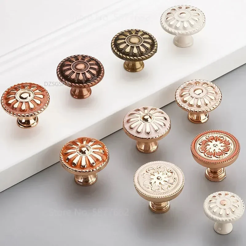 Jhemcu evropan tisk keramika madlo moderní skříň šatník dveře madla klasický zlato kvést knoflíky madlo sad táhne 7015