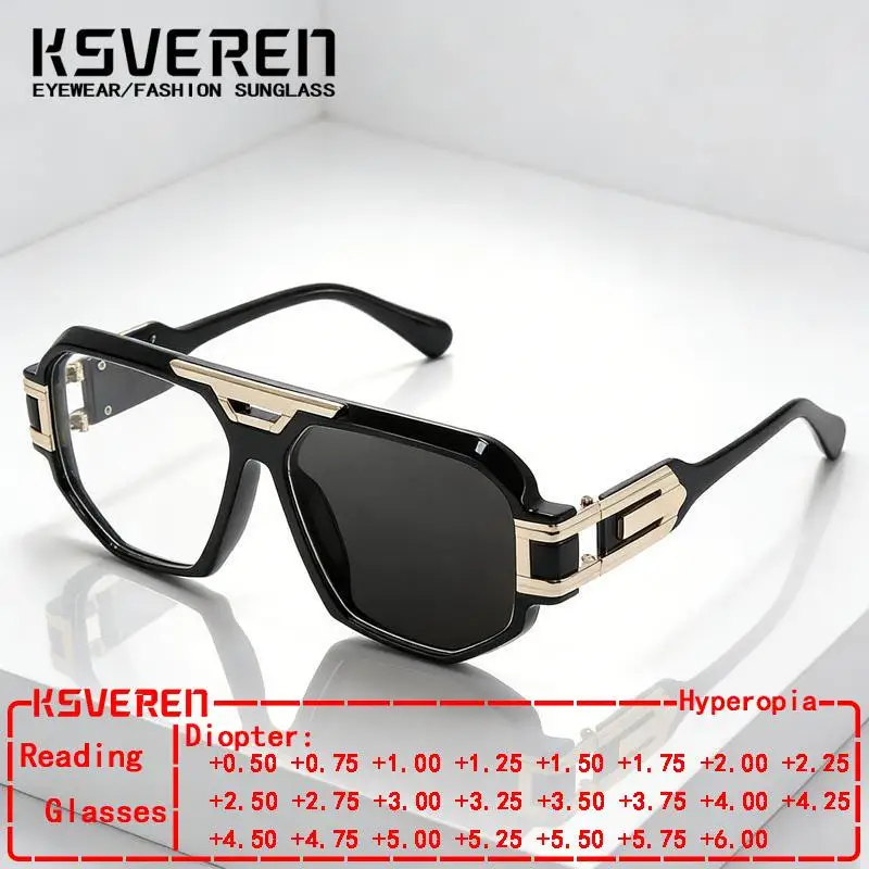 Hustý formulovat čtverec fotochromatické čtení brýle muži ženy dokonaný předpis presbyopický brýle outdoorové discolour brýle
