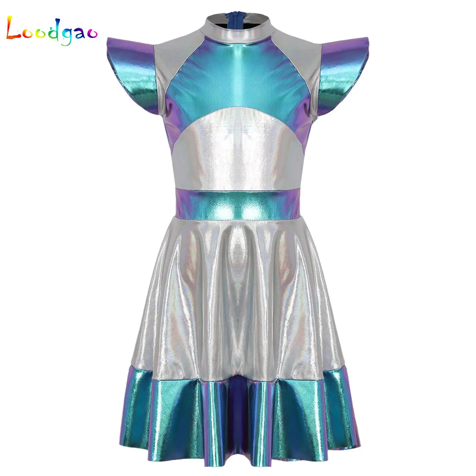 Děti dívčí tutu balet šaty taneční oblečení leskle metalické barva blok šaty halloween kosmonaut cizinec vnější mezera cosplais kostým