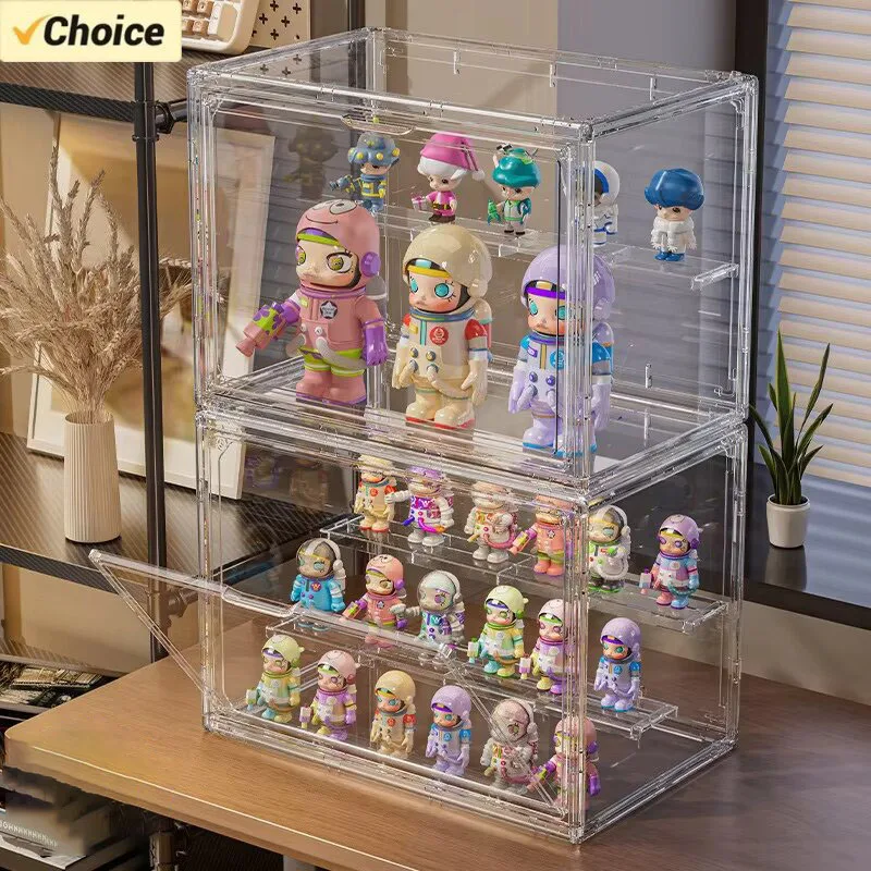 Průhledný displej skříňka stohovatelná plastový prachotěsná úložný bins figur displej sběratelské brašna kosmetický ukázat pouzdro s interlayers