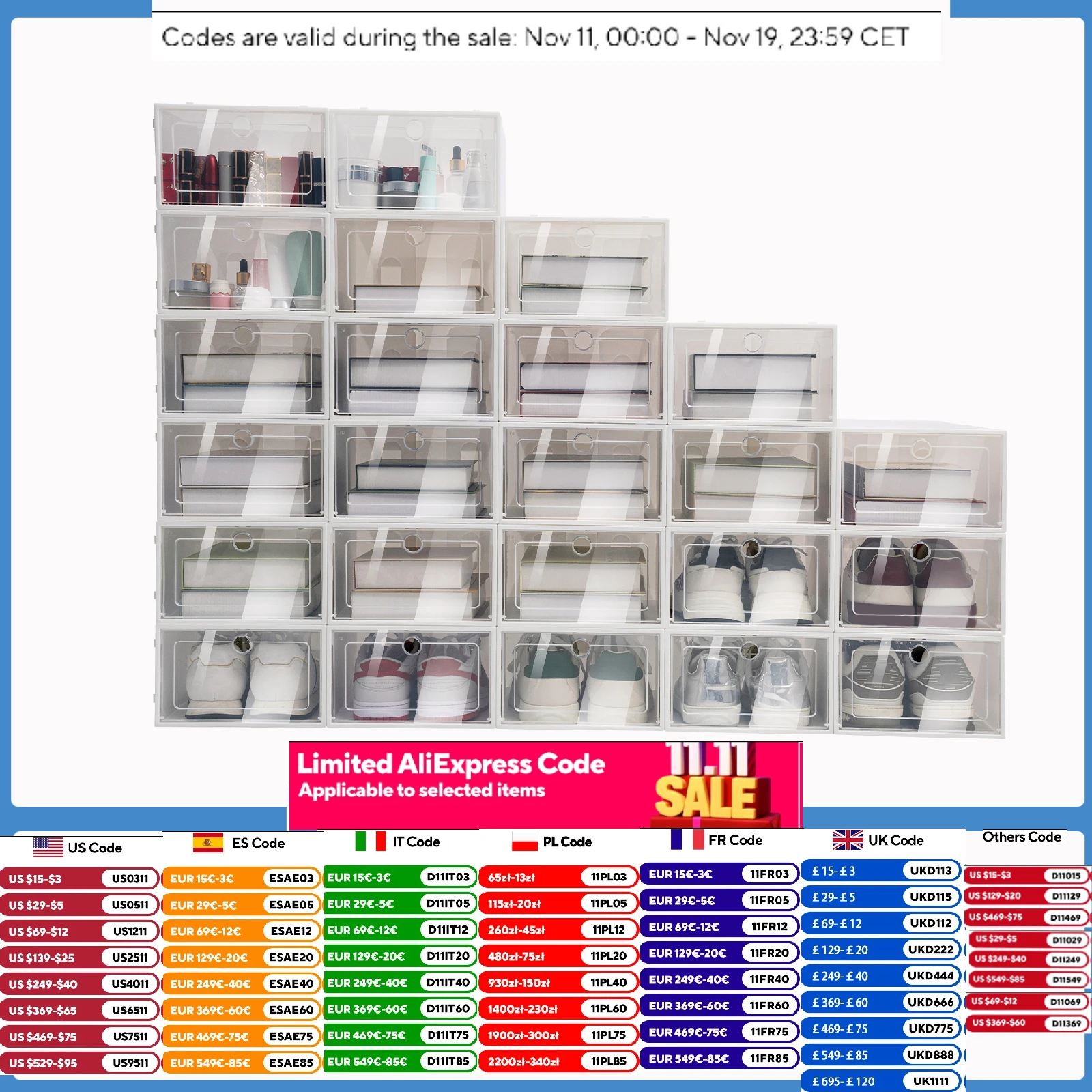 20/24 ks skládací průhledná bota skříňka jednoduchý plastový šuplík styl stohovatelná skříňka prachotěsná volný kombinace držák