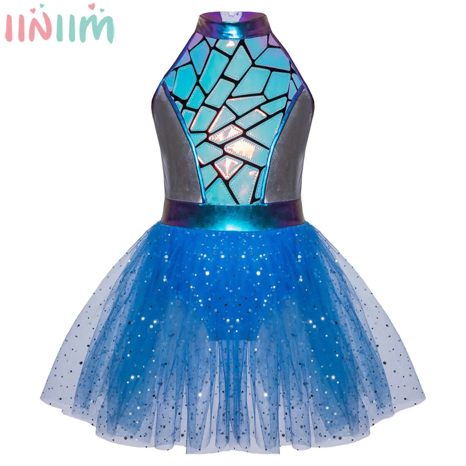 Dívčí cizinec kosmonaut mezera bojovnice cosplais kostým metalické lesklý balet tančit tutu trikot šaty pro halloween karneval večírek