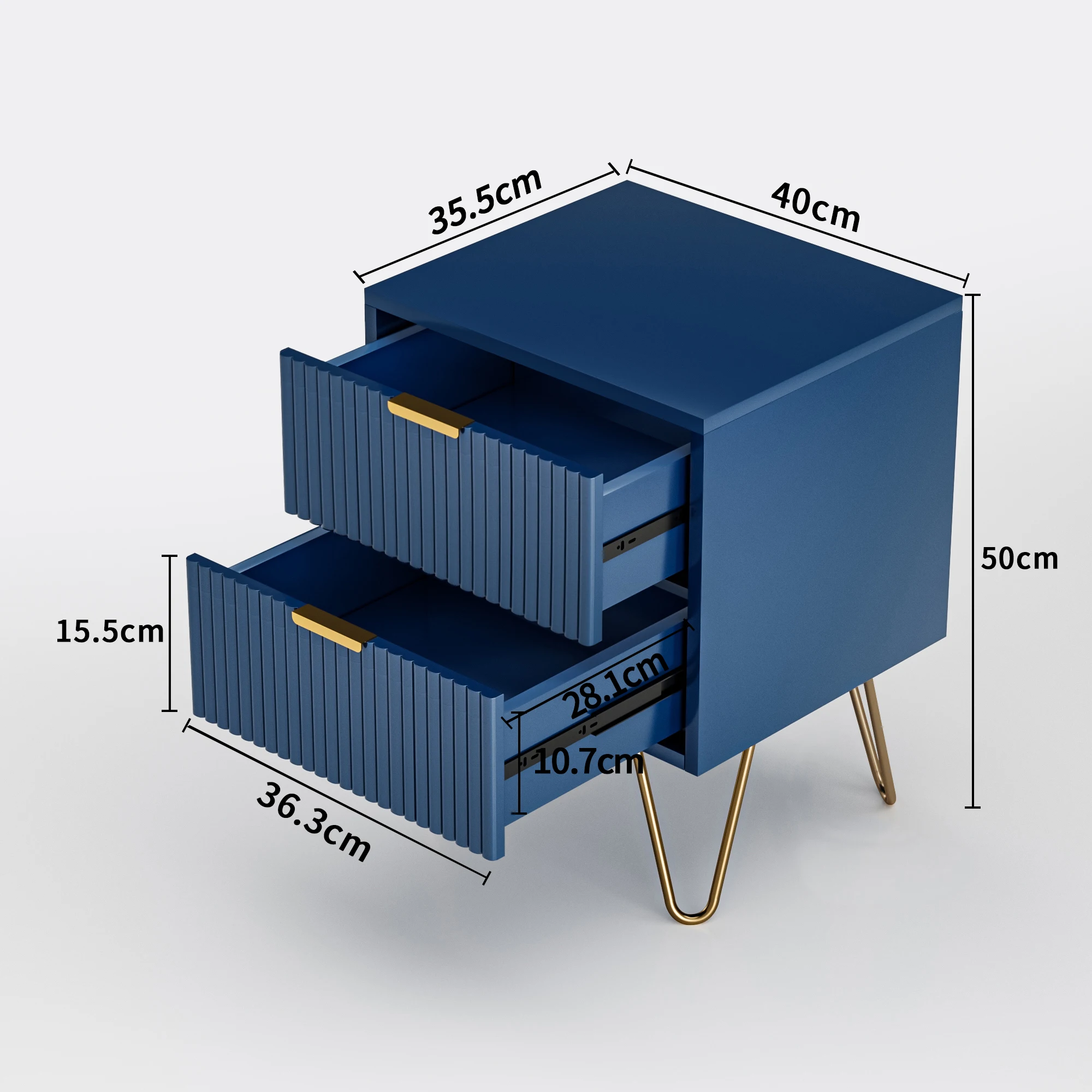 U postele stůl, noc stůl s 2se zásuvek, zlato kov nohama a madla, pro ložnice a žití pokoj, temný modrá