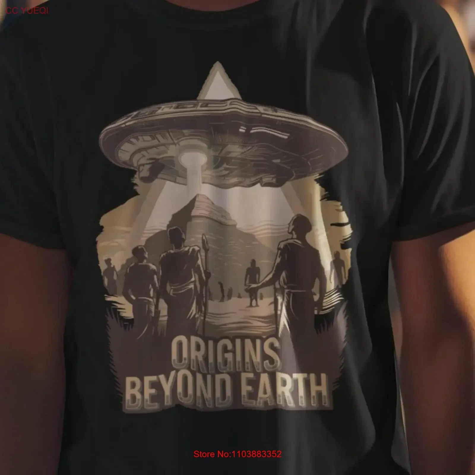 Origins u konce země T košile UFO a antikové pyramidy sci fi umění cizinec kontakt vintage sepraná jemně versatile ležérní