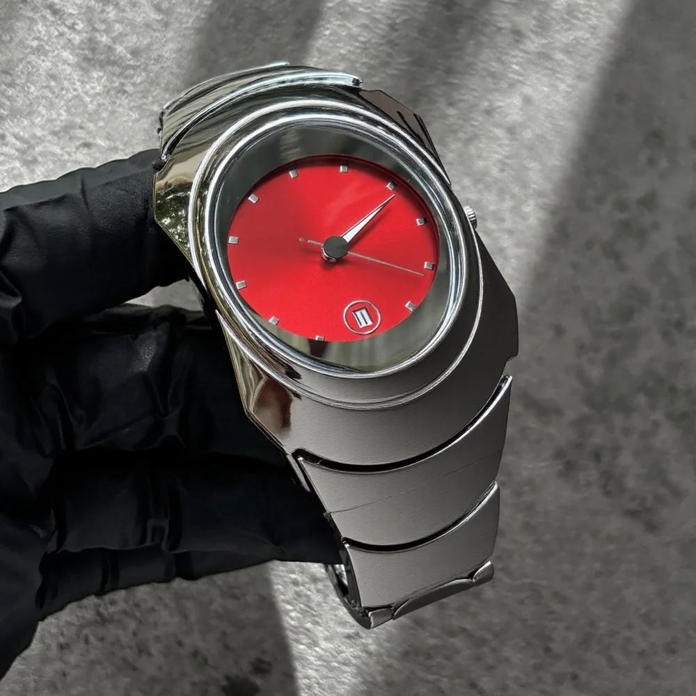 Personalize cizinec červená křemen hodinky pánská číslo jednotné y2k šedá styl kreativní čepel design neobyčejný móda ocel muži hodinky AAA hodiny