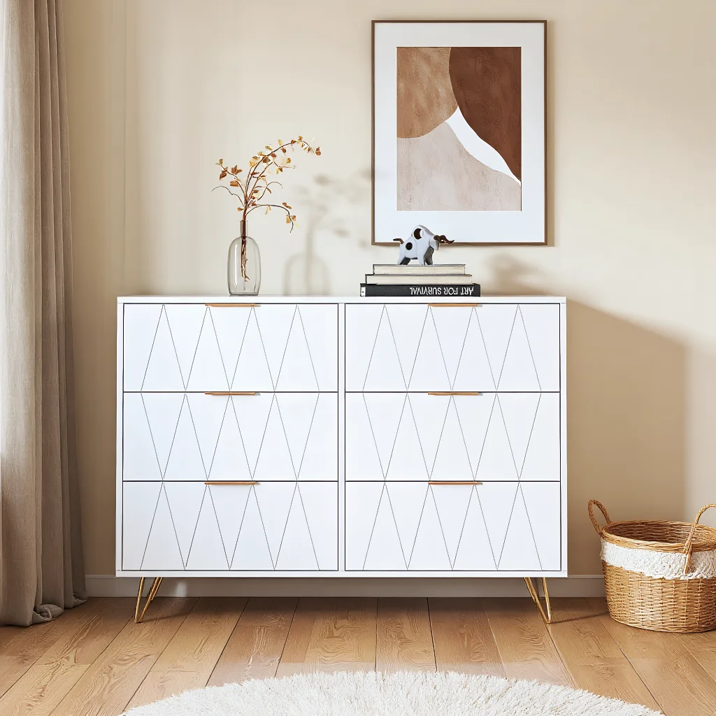 Moderní 6pro bota úložný skříň, diamant ražené povrch a zlatý madla pro ložnice a předsíň