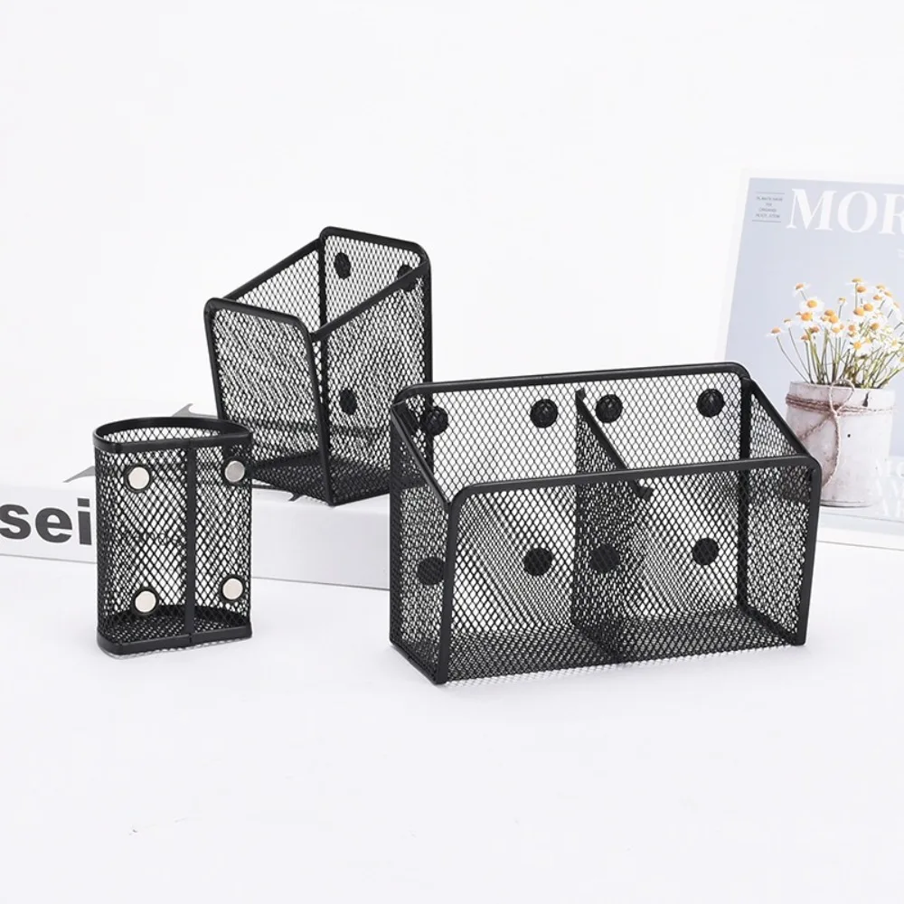 Přenosné velký schopnost magnetický úložný koš pletivo multifunkční magnetický tužka držák kov úložný skříňka domácí