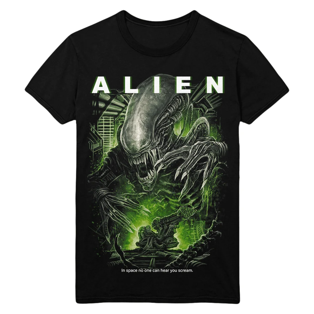 Cizinec tričko muži léto xenomorph sci-fi hrůza grafické krátký rukáv nadrozměrné pouliční oblečení volné odpovídat film fanoušek tričko