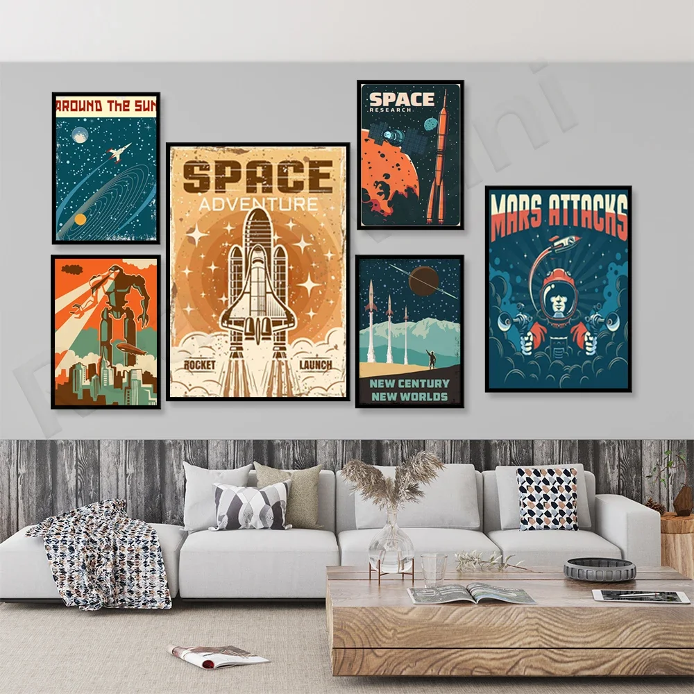Mezera UFO cizinec planeta luna sci-fi fantasie umění, mezera plakát, futuristic cizinec raketa ničí kosmonaut sci-fi UFO mezera planeta umění