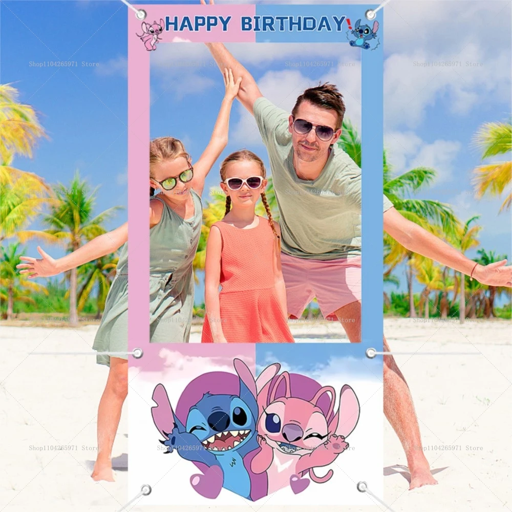 Lilo & steh kreslený backdrop modrá cizinec steh děti narozeniny večírek dekorace děťátko sprcha fotka prapor fotografie rekvizity