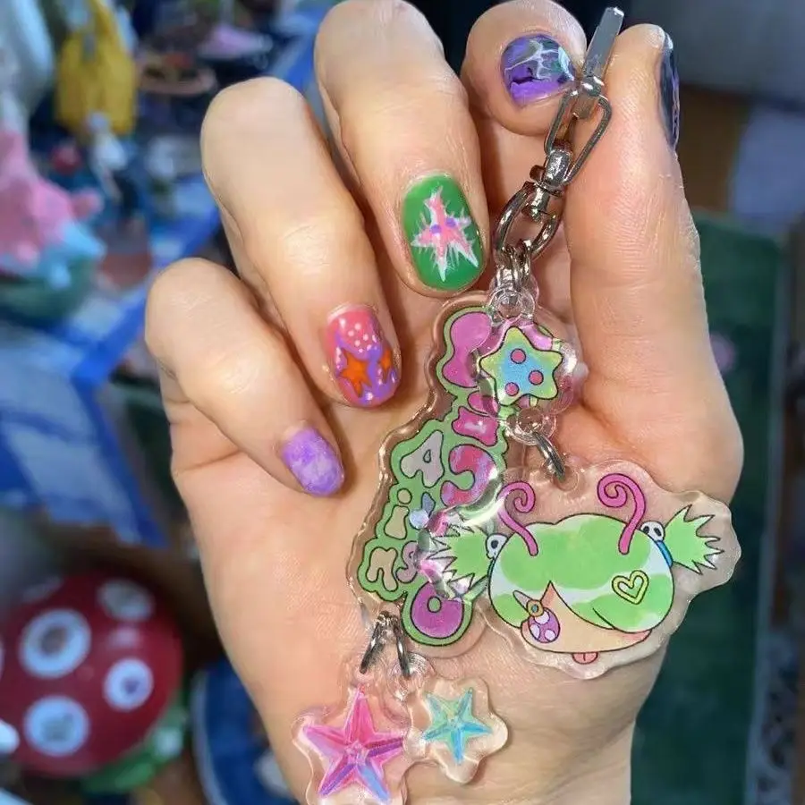 Mikro cizinec anime klíčenka ženy kreslený akryl klíč běžící pás muž klíč prsten přívěsek okrasa příslušenství kamarad dar