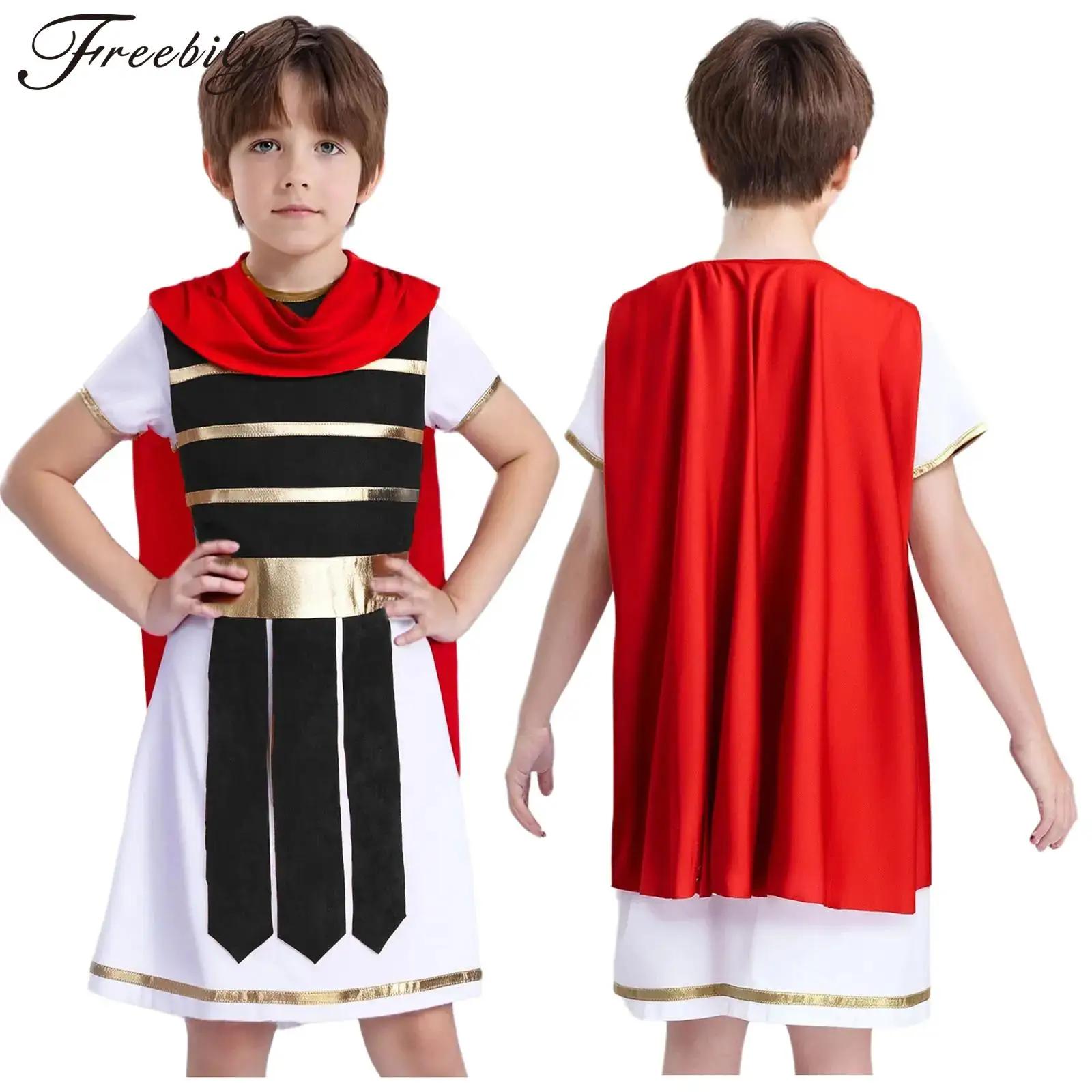 Chlapci antikové řecký římský spartan bojovnice kostým halloween večírek středověký jezdec voják gladiator cosplais bájit šaty pelerína talár