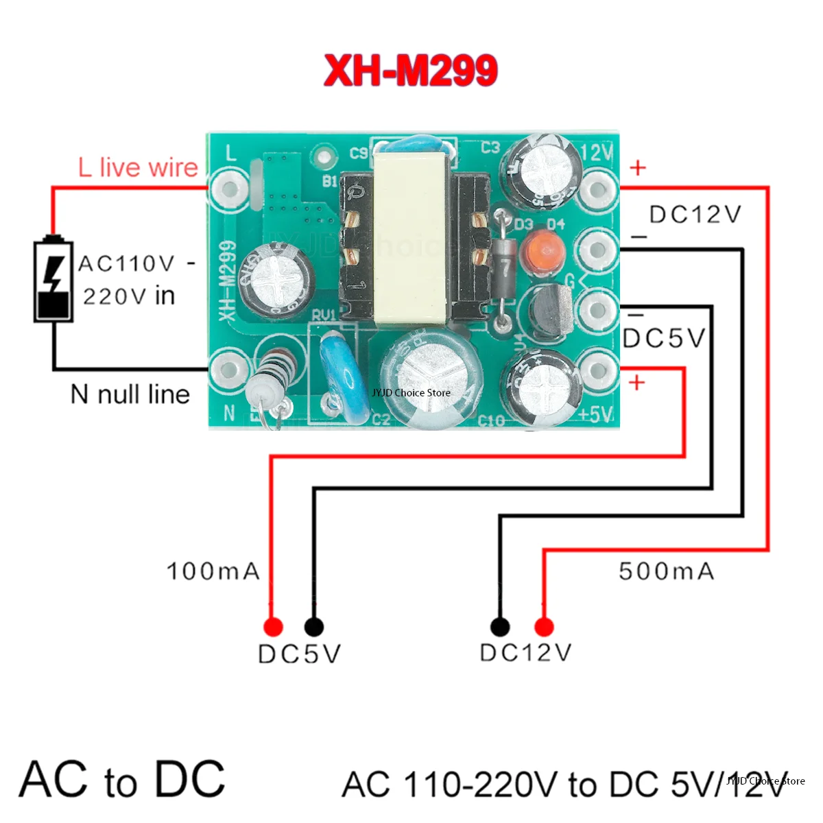 XH-M299 nový horké mini AC-DC konvertor střídavého 110v 220v na stejnosměrný 12V 0.2A+5V modul deska velkoobchod JYJDDIY