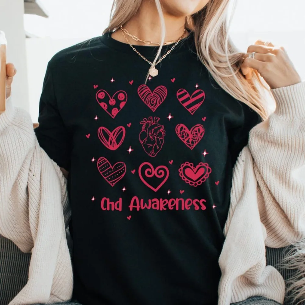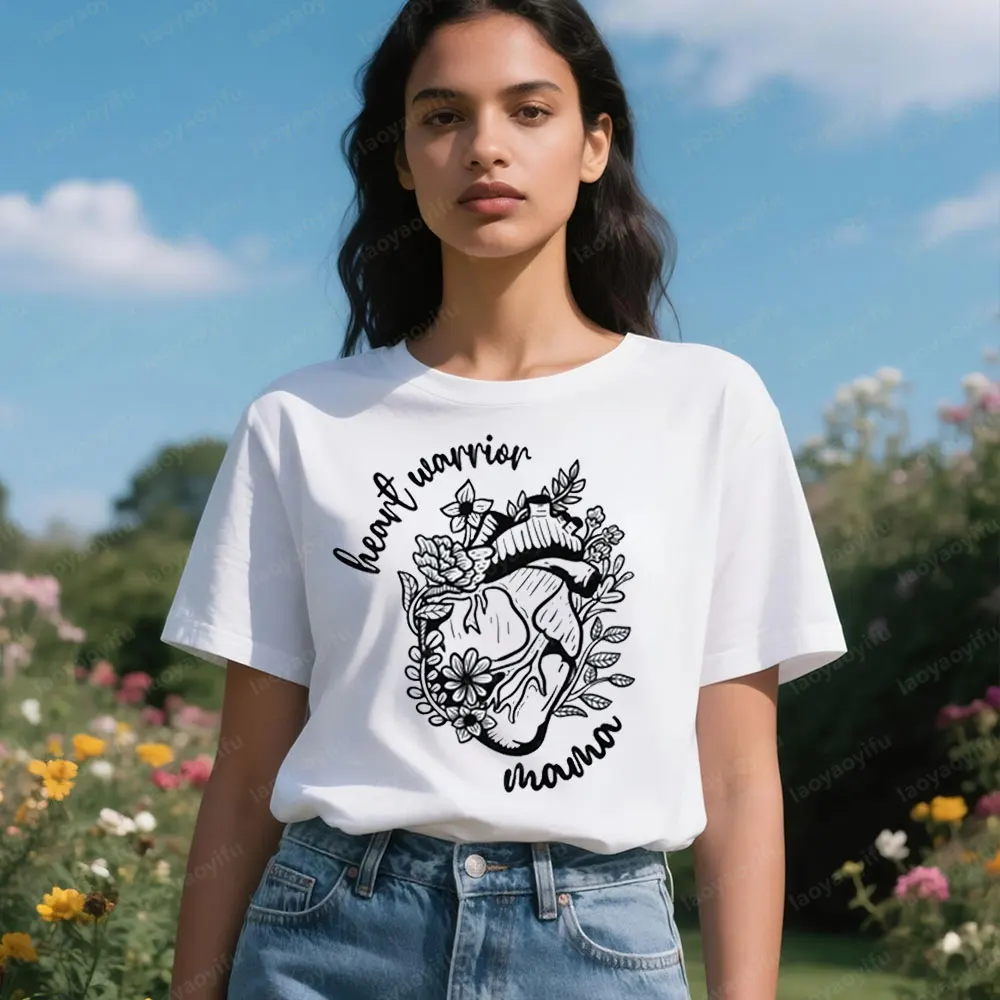 Srdce bojovnice mama tričko CHD vědomí tshirts srdce z zatracený květin kreativní design tričko ženy crewneck bavlna tričko topy
