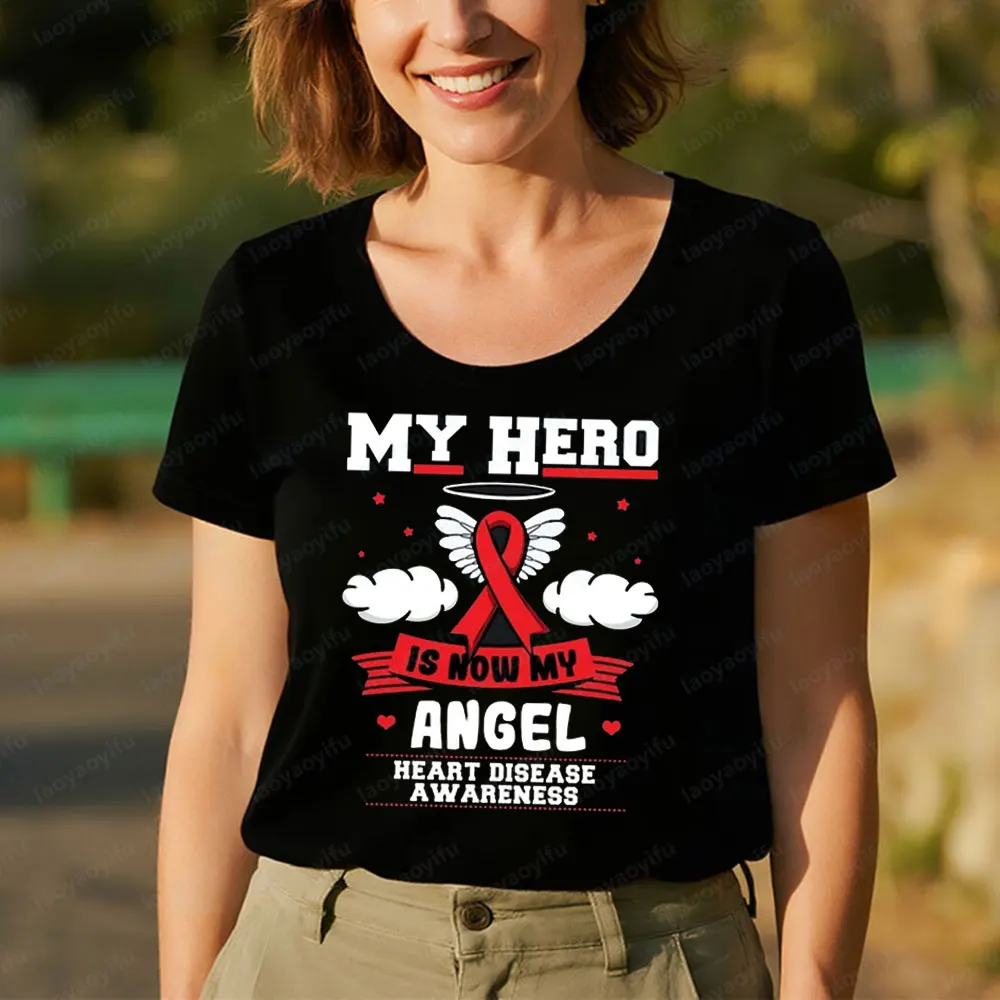 Má hrdina je nyní má anděl košile vědomí dar pro srdce choroba bojovnice caring oblečení pro srdce choroba ženy muži bavlna tričko