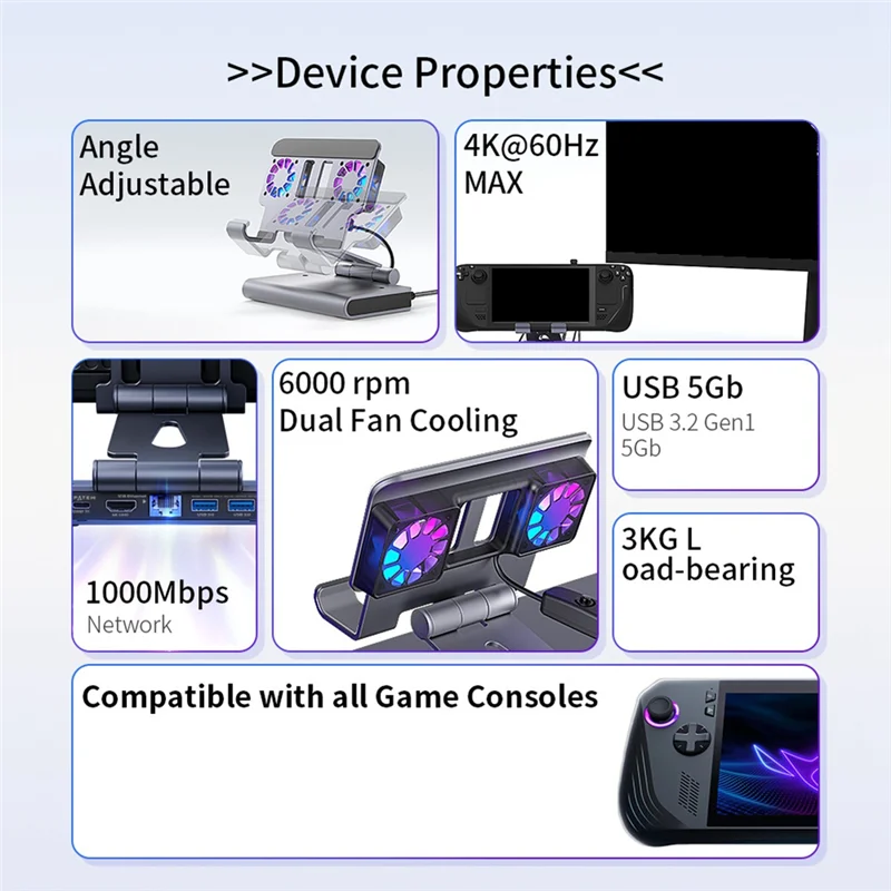 Applia-for pára paluba dokovací nádraží 6-in-1 pro rog spojit se x/legion go/msi dráp nastavitelný stánek s 4K fanoušci