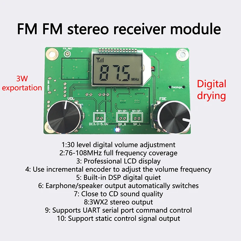 Digitální stereo FM přijímač modul s DSP - PLL, 87 - 108mhz, řadový ovládání & 50hz - 18khz dosah