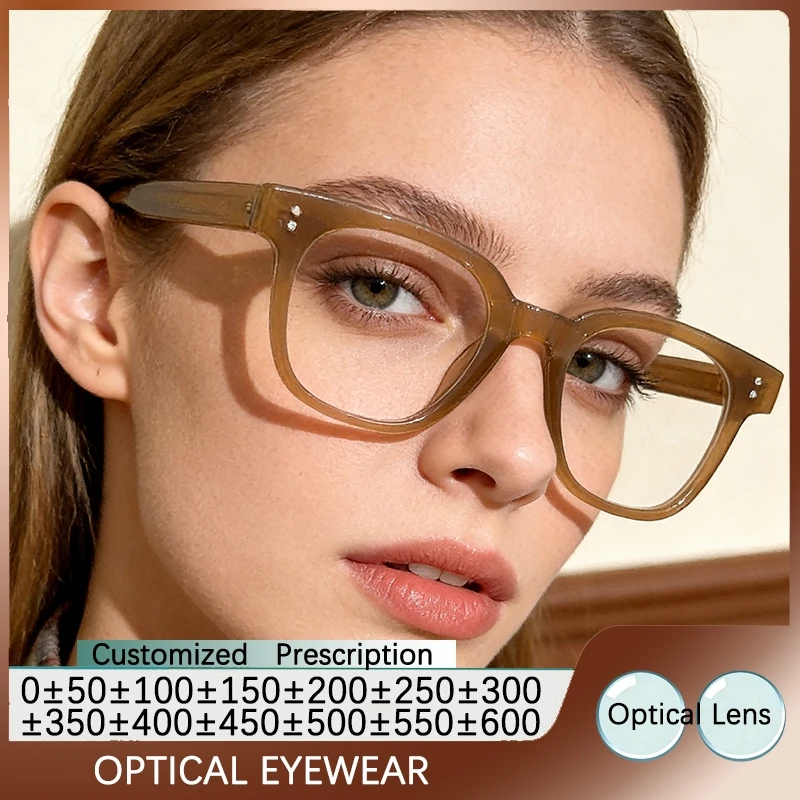 Čtverec průhledná hnědá brýle rámy ženy krátkozrakost brýle blokování modrá lehký předpis brýle tr90 muži čtení brýle