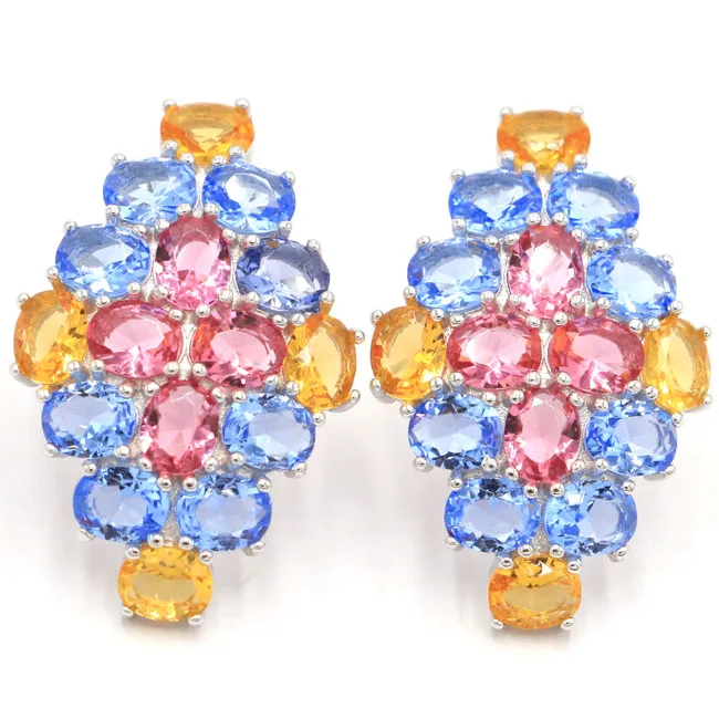 Opravdový 925 celistvý mincovní stříbro náušnice 34x23mm jazaz 6.8g multi barva růžová turmalín opravdový modrá safír opravdový červená rubín