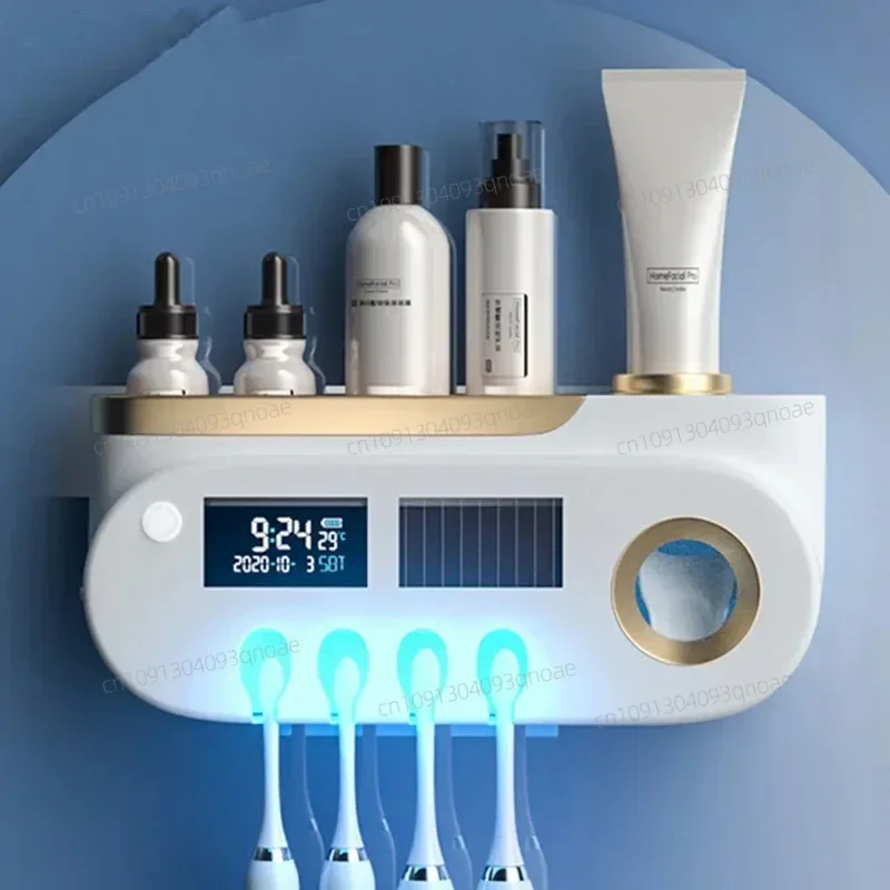 Zubní kartáček držák zeď montuje UV ultrafialové záření automatický zubní pasta dávkovač chytrý zubní pasta extrudér úložný držák