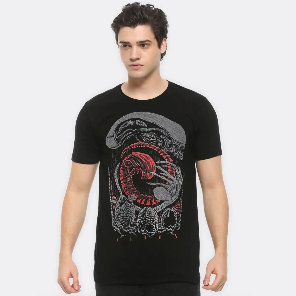 Léto retro sci-fi tričko muži cizinec xenomorph nestvůra grafické krátký rukáv nadrozměrné pouliční oblečení ležérní volné odpovídat kult fanoušek nejvyšší