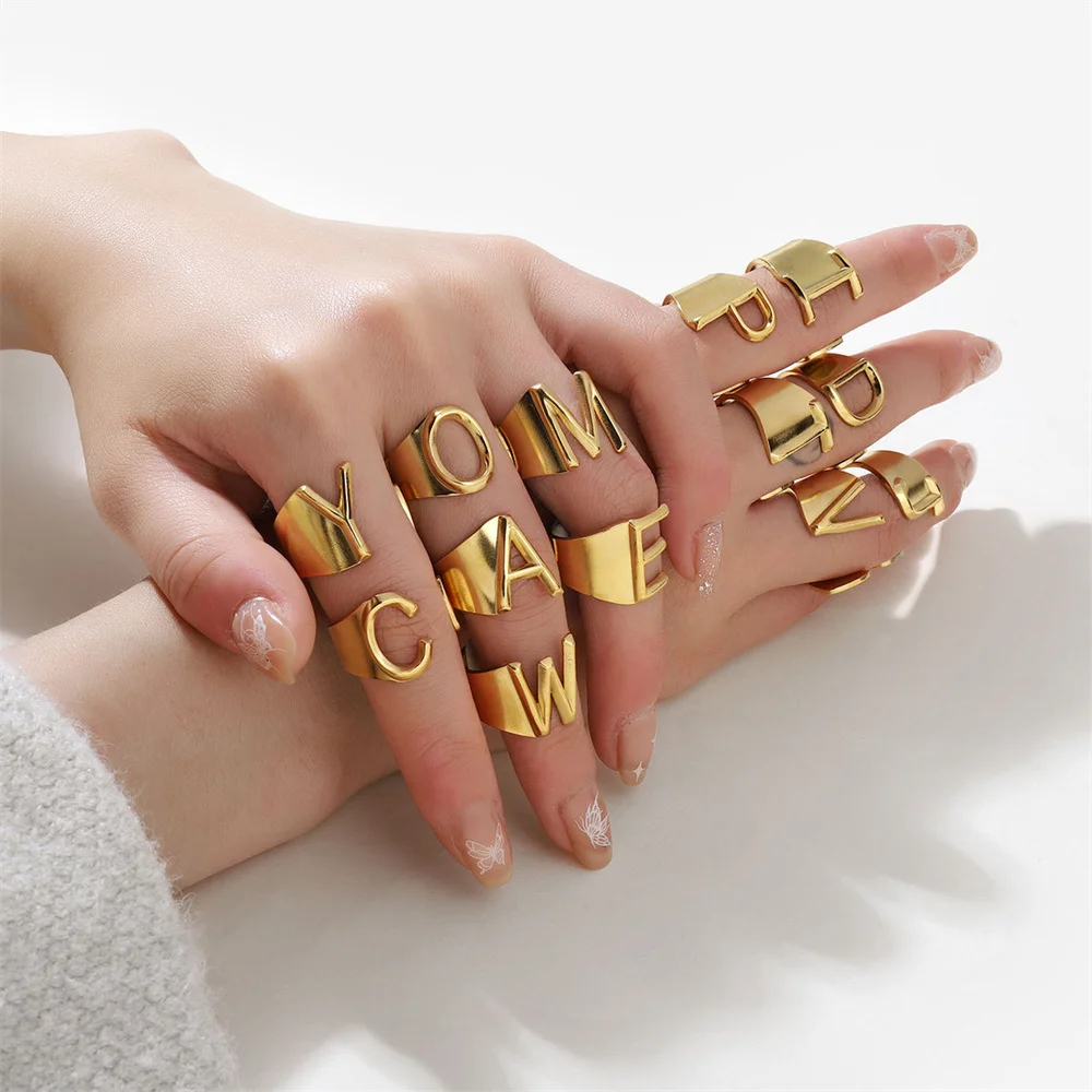 Punková počáteční dopis jméno kroužky zlato stříbro barva nerez ocel nastavitelný abeceda kroužky pro ženy muži šperků narozeniny dar