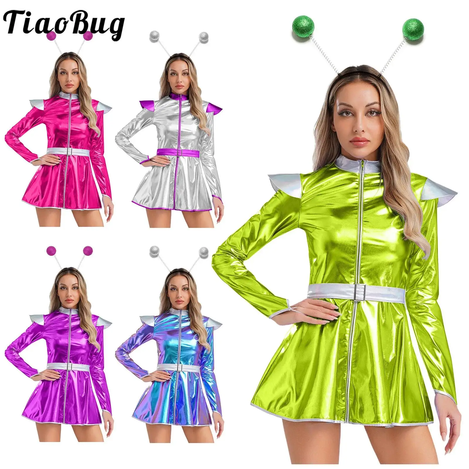 Ženy děti cizinec vlasy obruč vnější mezera legrační cizinec outerspace cosplais kostým themed večírek roleplay kostým karneval šaty nahoře