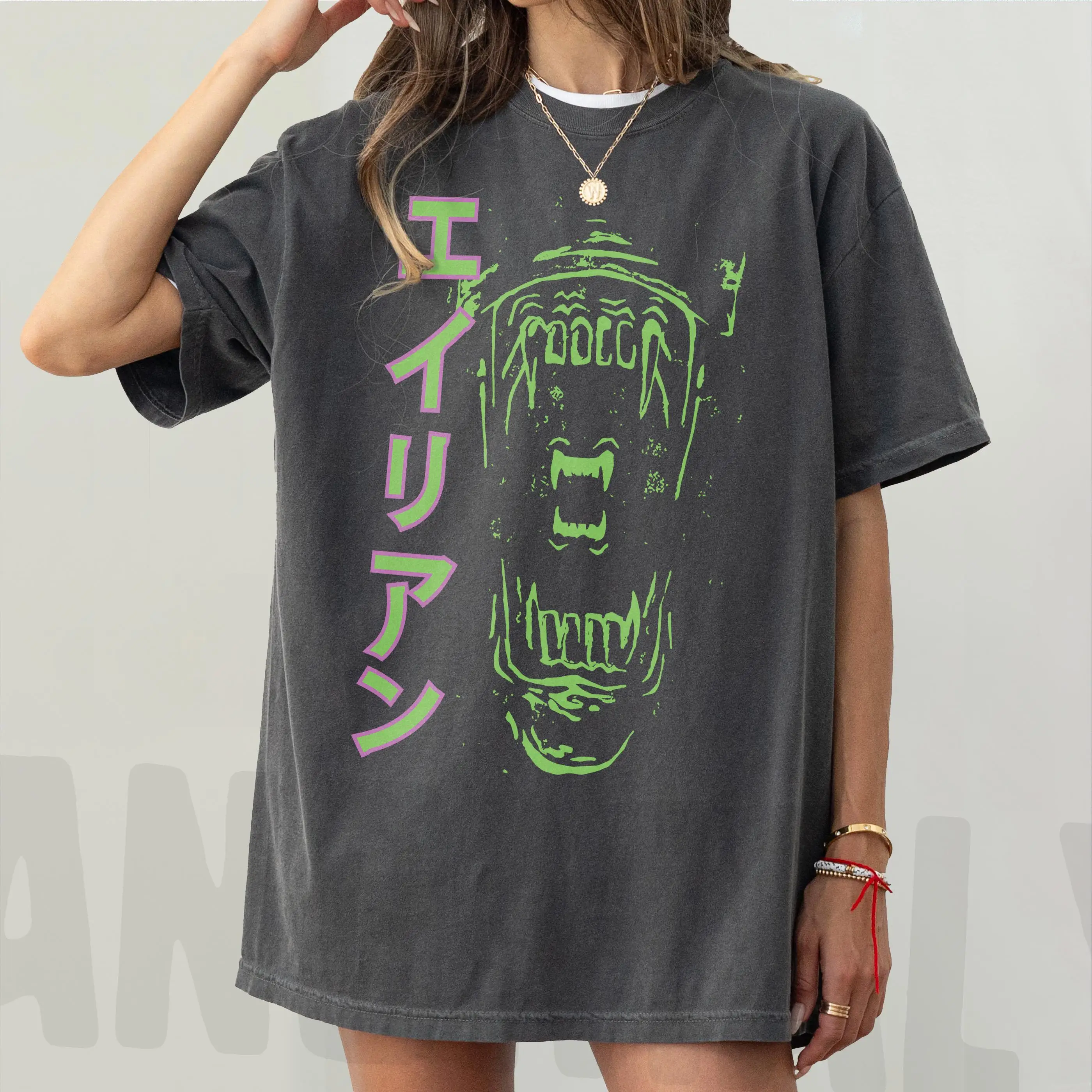 Retro cizinec xenomorph košile japonský hrůza film grafické tričko grafické krátký rukáv košile unisex muži ženy all-season