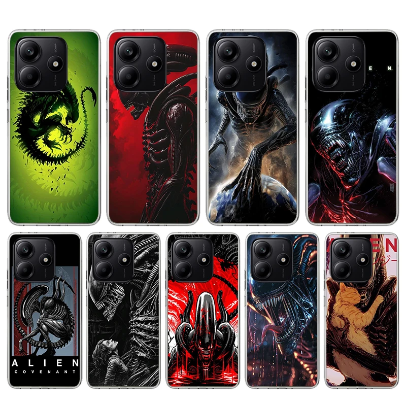 Hustý a-alien x-xenomorph silikon telefon pouzdro pro Xiaomi Redmi nota 14 14S 13 12 12S 11pro pro plus 11S 10uo 10S 11T 11E 4G 5G měkké cov