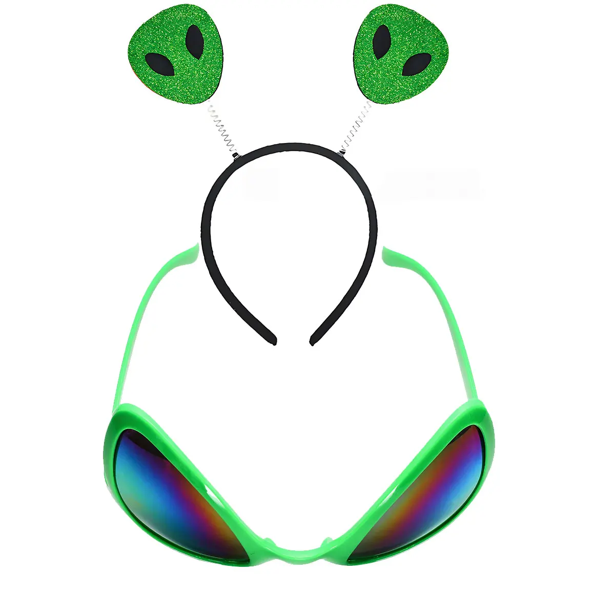 Legrační cizinec brýle martian vlasy obruč čelenka halloween cosplais kostým příslušenství kůzle ženy muži duha čoček cizinec brýle