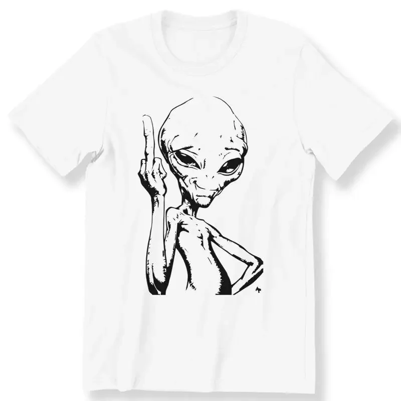 Cizinec s prostřední prst pánské dámy T košile UFO 100 bavlna