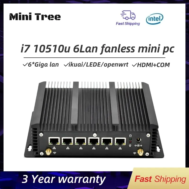 Win10 linux vložené průmyslový počítač DB9 rj45 rs232 6lan pfsense ubuntu linux průchod firewall frézku i7-10510u mini skříňka PC 4G sim