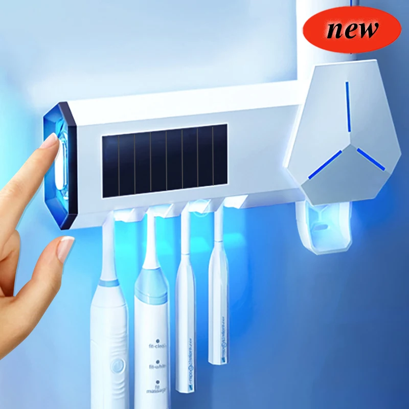 Wall-mount UV zubní kartáček držák automatický zubní pasta dávkovač squeezer solární zubní kartáček úložný držák koupelna příslušenství sada
