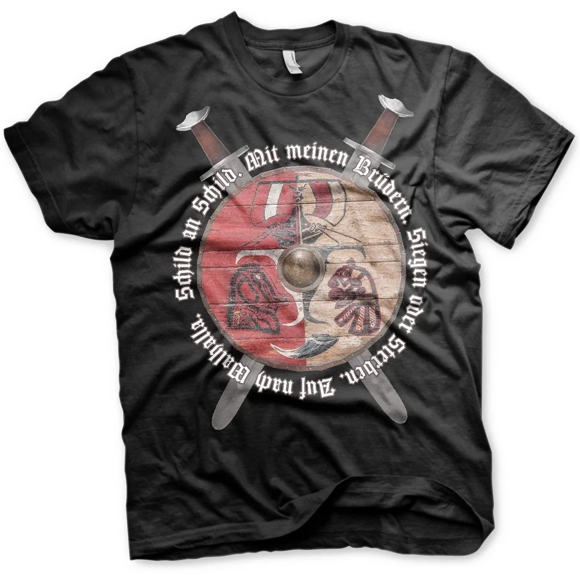 Vikingies bojovnice heslo přešel swords a runa dřevo štít tričko nový 100% bavlna krátký rukáv výstřih do O tričko ležérní pánská nejvyšší