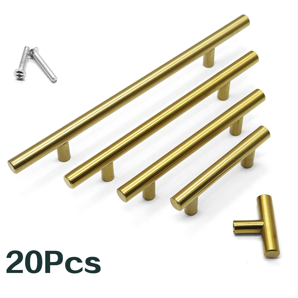 20ks kartáčovaný zlato kuchyň madlo nerez ocel T pult dveře dřít 96/128/160mm skříň knoflíky a madla černá nábytek madlo