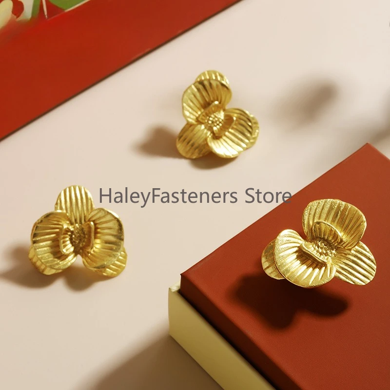 4 ks kreativní zlato kvést mosaz skříň madla po jednom díra šuplík knoflíky domácí dekorace prádelník šatník táhne pro dětské pokoj