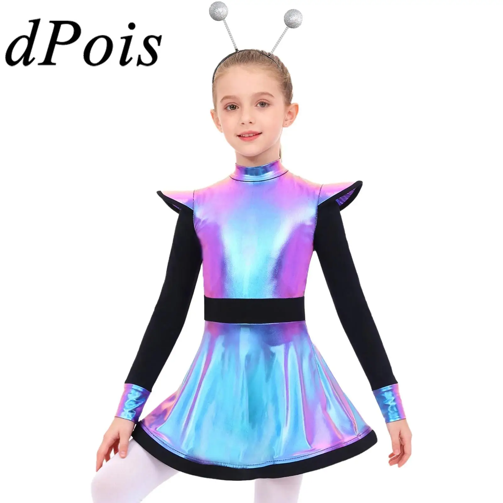 Ženy děti cizinec vlasy obruč vnější mezera legrační cizinec outerspace cosplais kostým themed večírek roleplay kostým karneval šaty nahoře